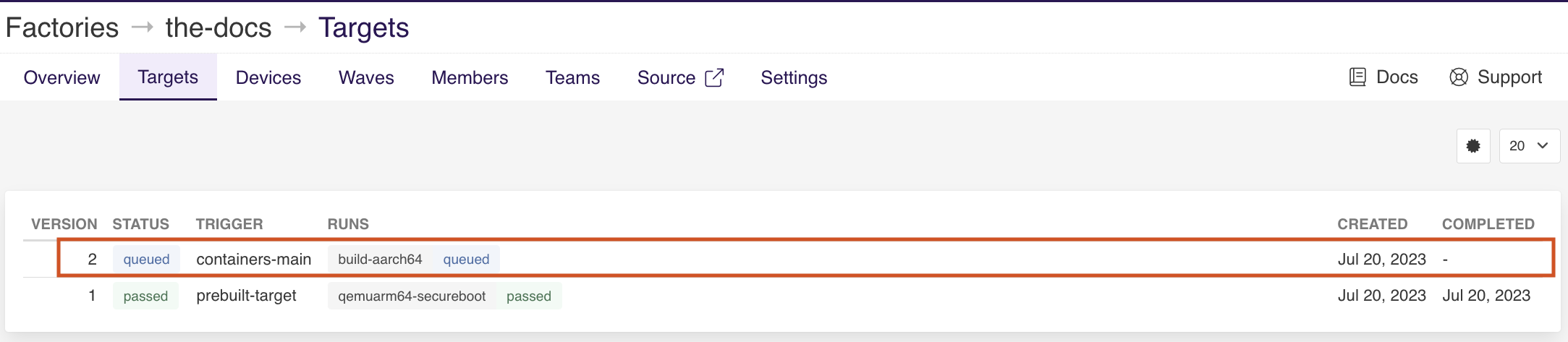 Go to https://app.foundries.io, select your Factory and click on Targets: