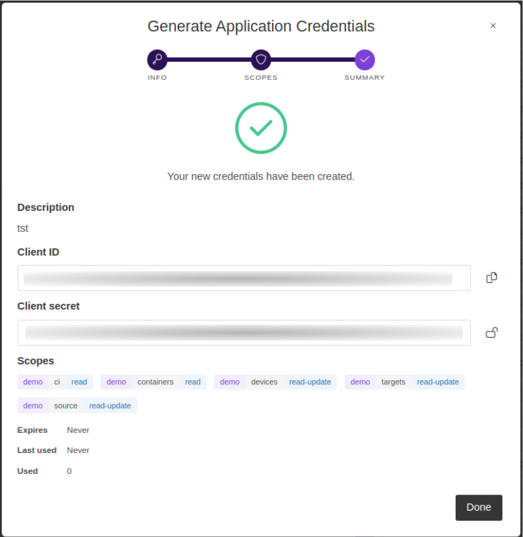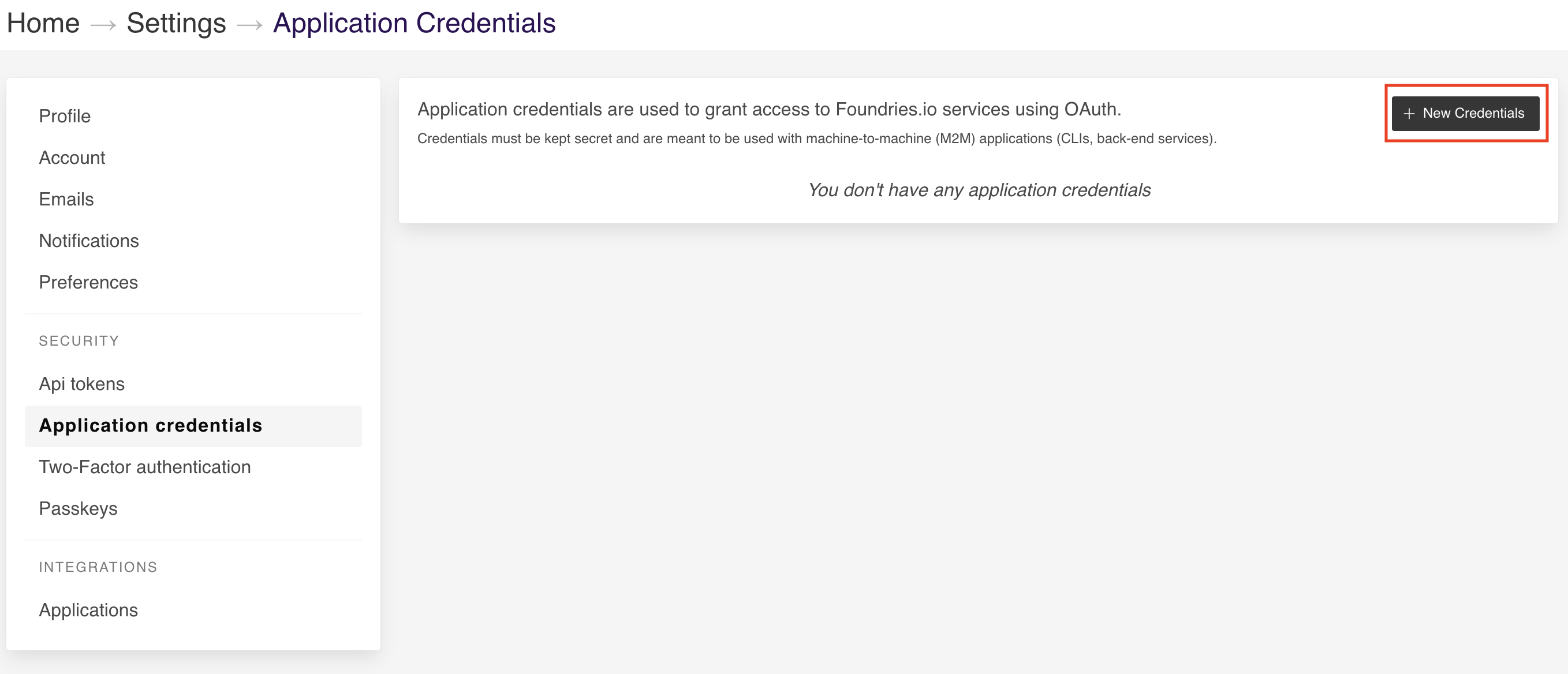 With Fioctl installed, authenticate it with our backend. For this, you will generate OAuth2 application credentials for interacting with the FoundriesFactory™ Platform API:
