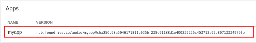After the CI Job finishes, refresh the page and find your application in Apps: