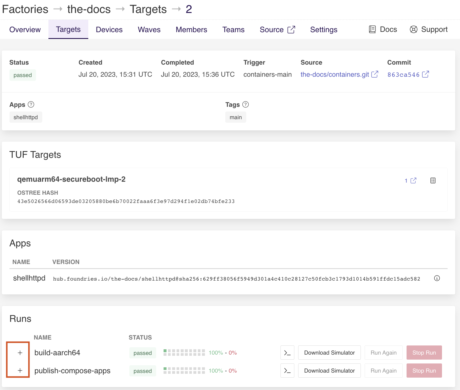 Go to https://app.foundries.io, select your Factory and click on Targets: