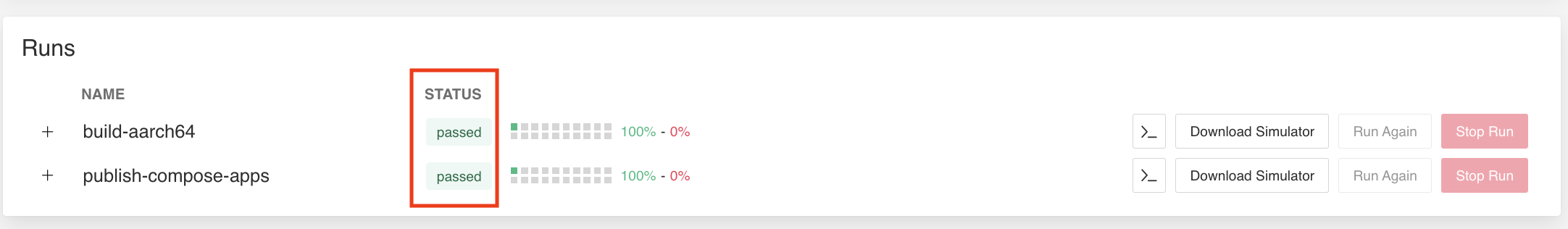 If all the builds finish without error, the Target is created and published and everything will be marked as passed.