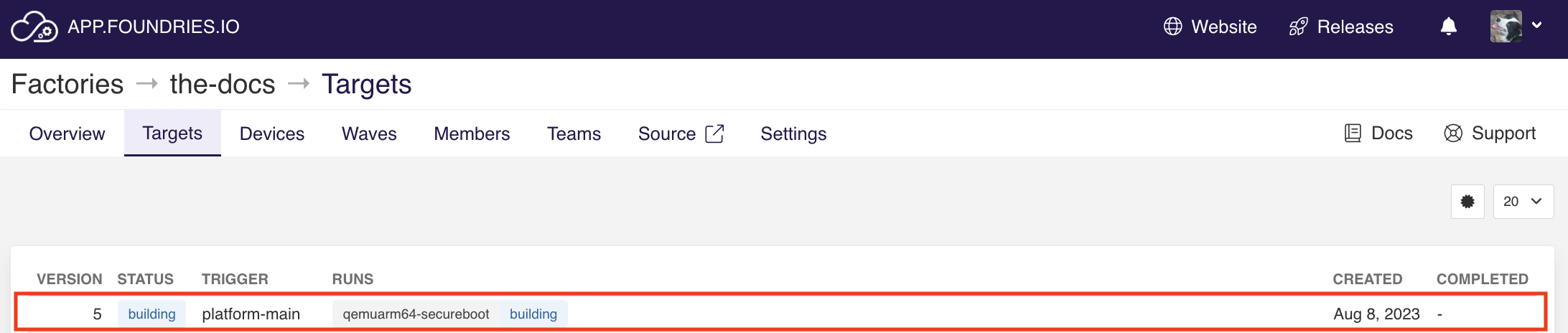 For example, pushing to main triggers the usual build and an additional run called assemble-system-image. Check the latest Target you just created: